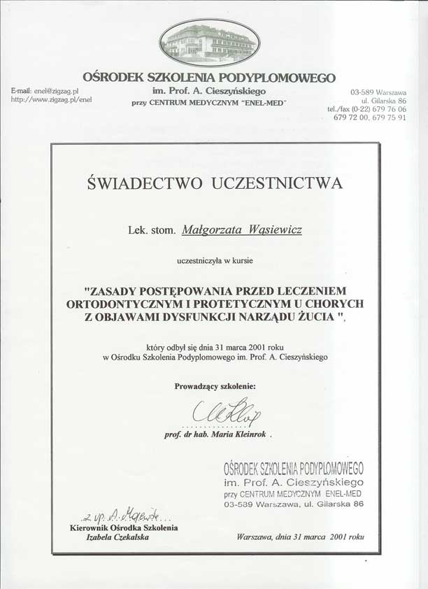 specjalista chirurg stomatolog Małgorzata Wąsiewicz